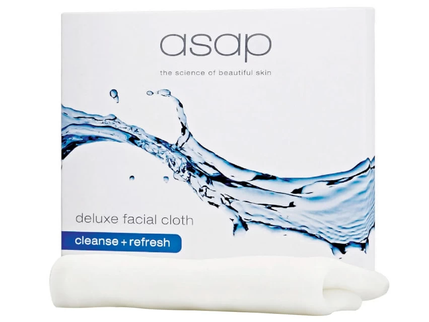 asap Deluxe Facial Cloth removes makeup and impurities.