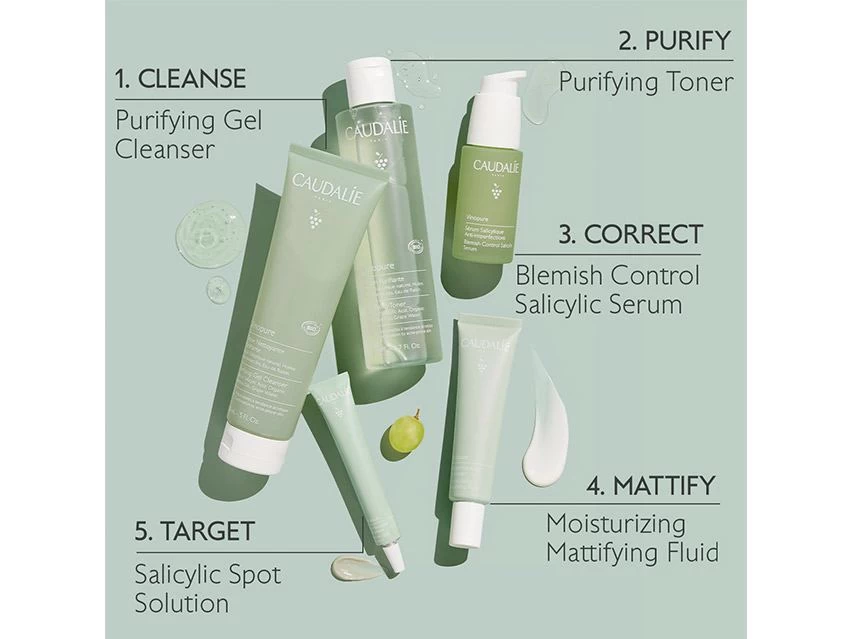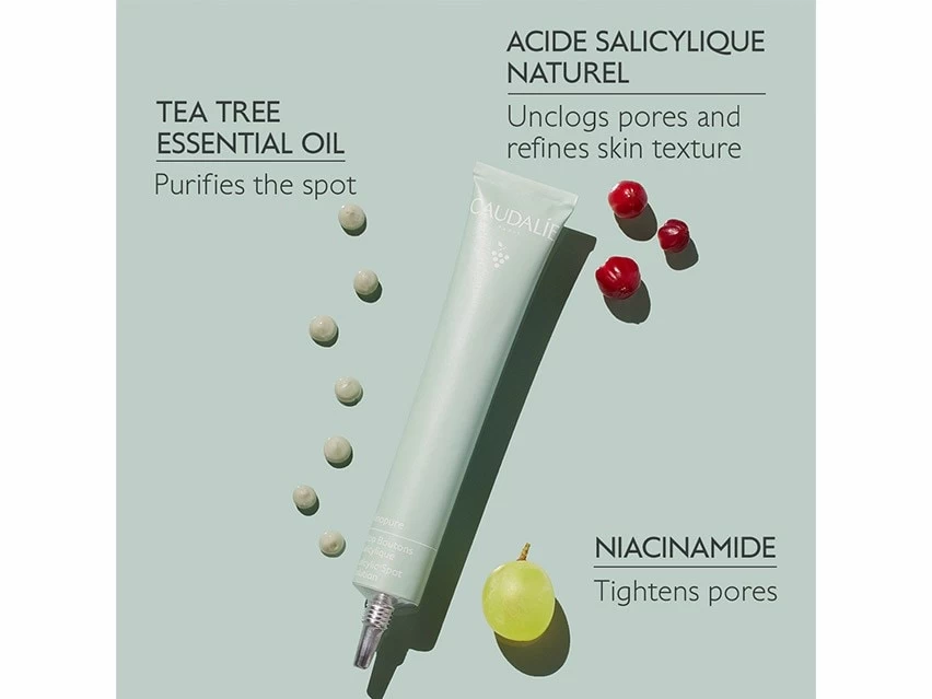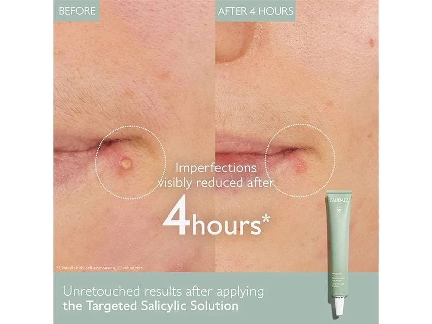 Caudalie Vinopure Salicylic Spot Solution visibly purifies skin fast.