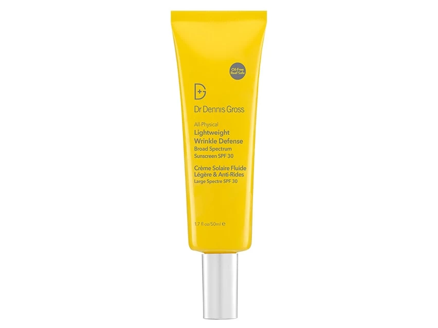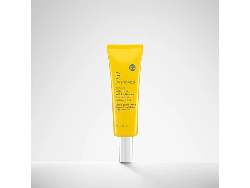 Dr. Dennis Gross Skincare All-Physical Lightweight Wrinkle Defense Broad Spectrum SPF 30 combines transparent zinc oxide and antioxidants for total skin protection.