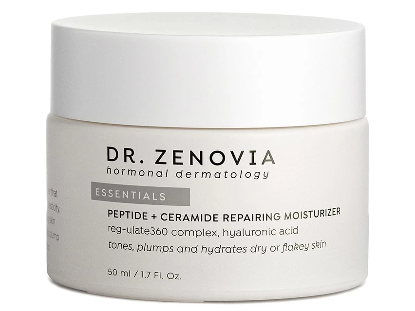 Dr. Zenovia Skincare Peptide + Ceramide Repairing Moisturizer attracts, retains and distributes moisture to fortify skin’s protect barrier.