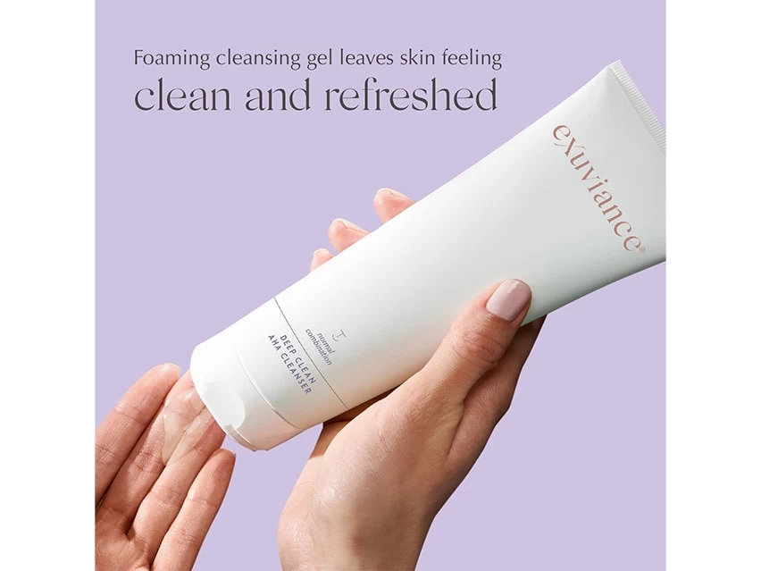 Exuviance Deep Clean AHA Cleanser contains anti-aging ingredients that refine skin for a more vibrant look.