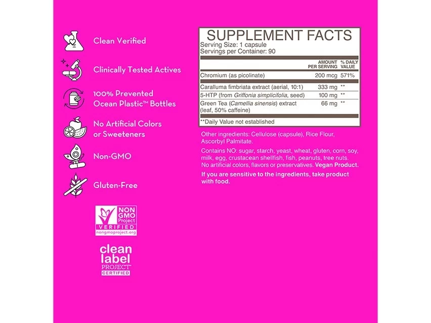 This vegan supplement to helps decrease appetite, boost metabolism and support weight loss. Featuring a unique combination of caralluma fimbriata and 5 HTP, this supplement helps curb appetite and decrease overall snacking.