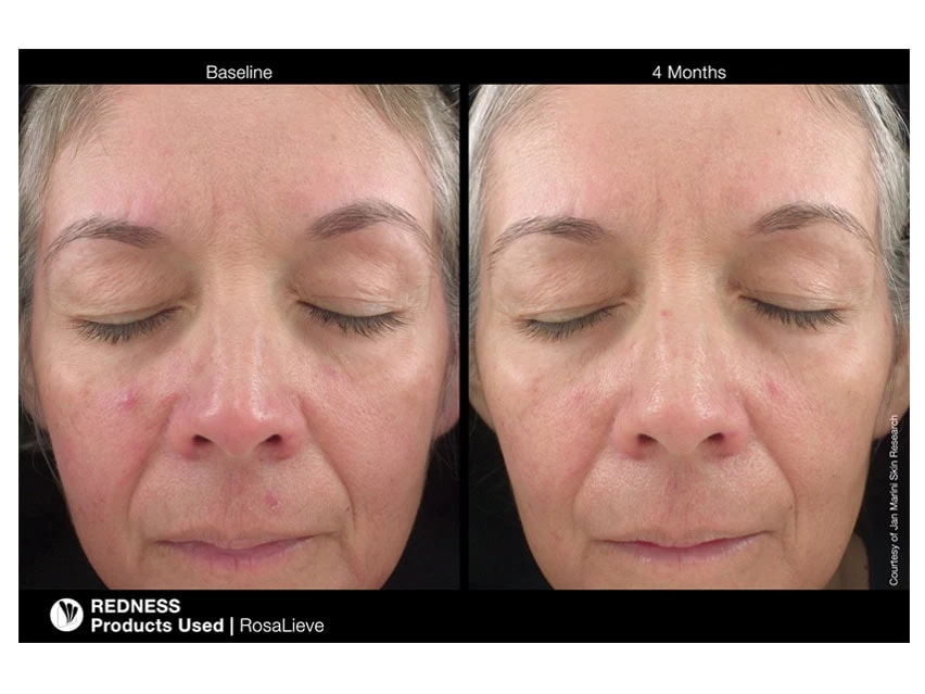 Skin thatās prone to rosacea or other irritation needs a calming treatment formulated to address the many causes of redness. Jan Marini RosaLieve Redness Reducing Complex combines azelaic acid to soothe inflammation and eliminate blemish-causing bacteria, potent botanicals to repair damaged skin and Tetrapeptide-14, a specialized protein that visibly alleviates skin redness. Antioxidant-rich shea butter and hyaluronic acid provide lightweight and long-lasting moisture to keep your complexion soft, supple and calm. Dr. Joel Schlessinger and his award-winning Advanced Skin Research Center conducted the clinical trials on this redness-reducing formula and were truly impressed with patient results.