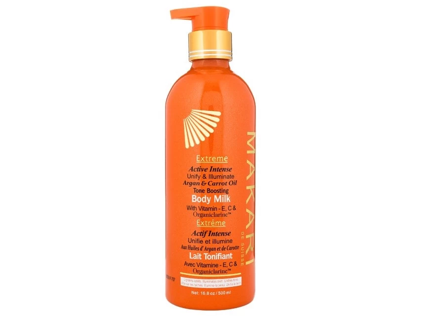Makari Extreme Argan & Carrot Oil Toning Milk visibly balances skin tone.