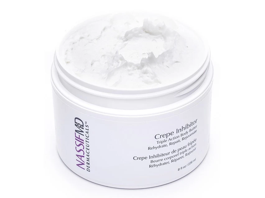 NassifMD® Crepe Inhibitor Triple Action Body Butter deeply moisturizes and smooths skin.