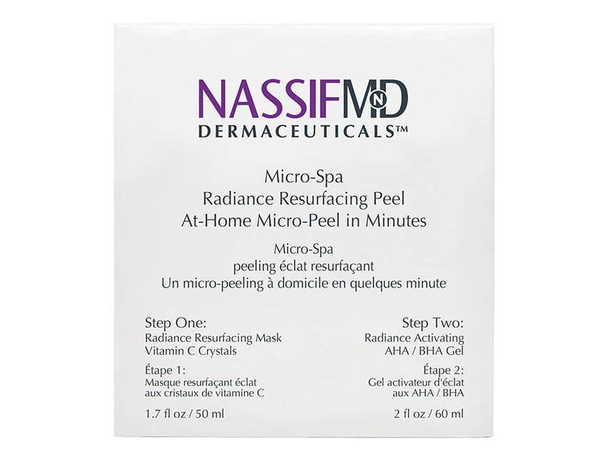 NassifMD® Micro-Spa Radiance Resurfacing Peel uses the power of vitamin C, AHA’s, BHA’s and peptides to rejuvenate skin.
