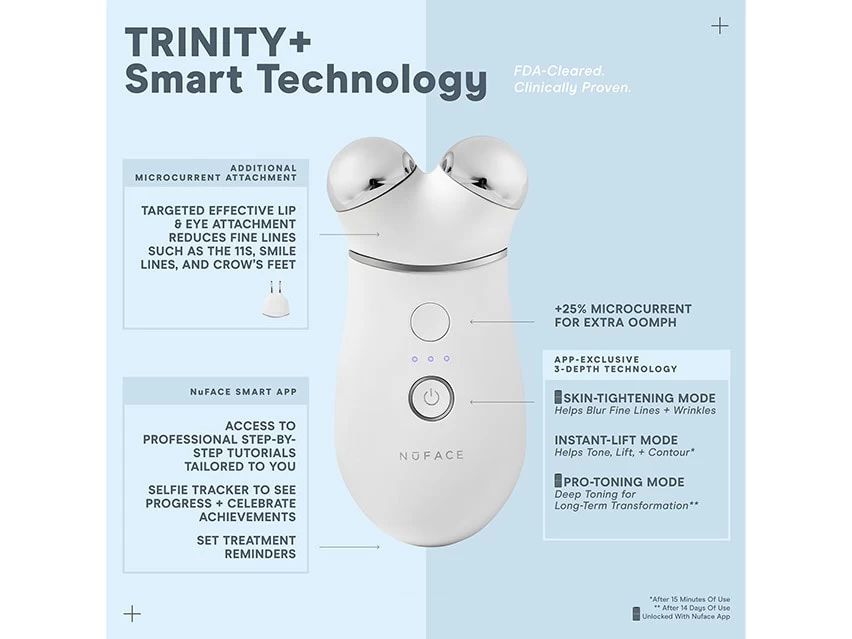 NuFACE TRINITY+ and Effective Lip & Eye Attachment helps you tone around your whole face.
