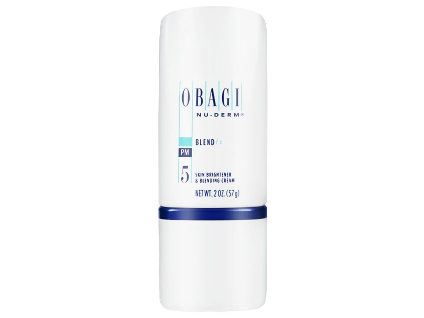 Obagi Nu Derm Blend Fx improves the appearance of sun damage and hyperpigmentation. This non-prescription night cream is a hydroquinone-free alternative to Obagi Blender that targets dark spots caused by melasma, acne, UV exposure and more. Blend Fx also helps improve skin elasticity by building healthy collagen. Its gentle formula works to provide anti-aging results without causing irritation. With regular use, this skin brightener will gradually improve the appearance of blotchy and discolored skin.