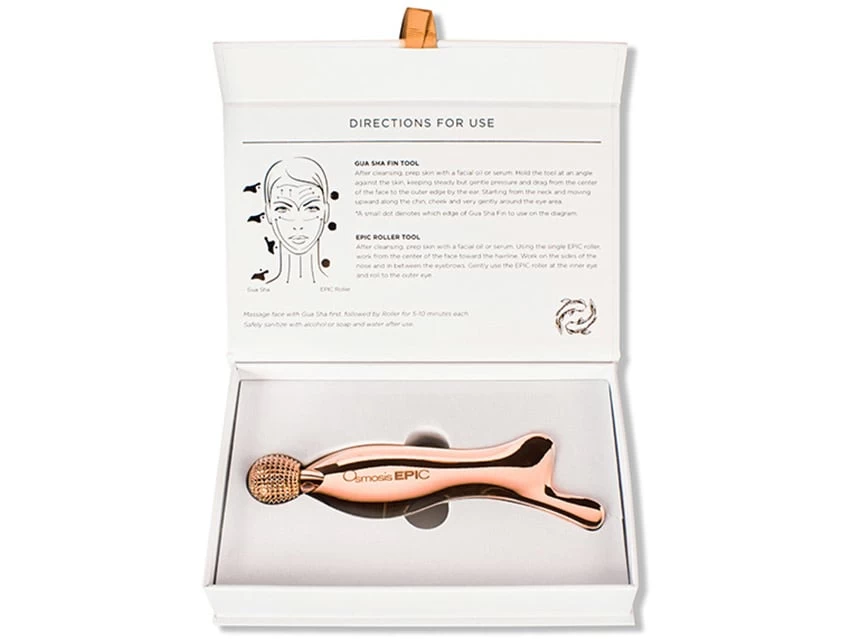 Osmosis Skincare Epic Duo Skin Tool combines the best of a gua sha and facial roller.