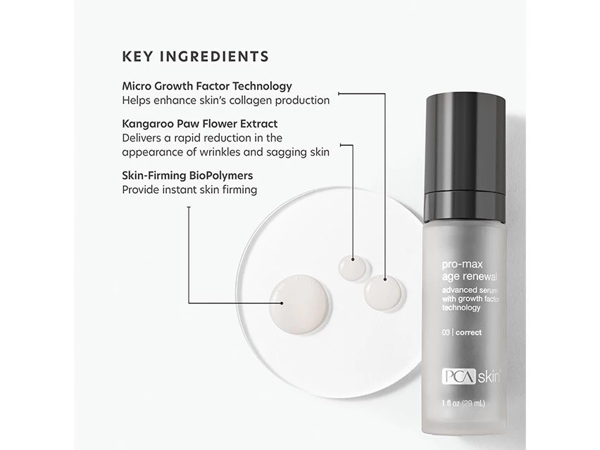 PCA SKIN Pro-Max Age Renewal Advanced Serum visibly lifts and firms.