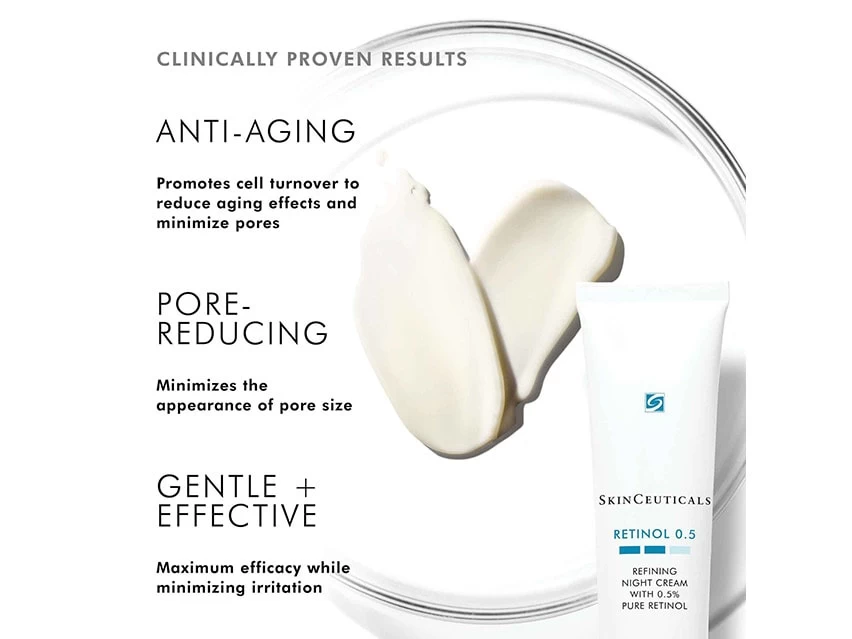 Refine skin and diminish visible signs of aging with SkinCeuticals Retinol 0.5 Refining + Anti-Aging Night Cream.