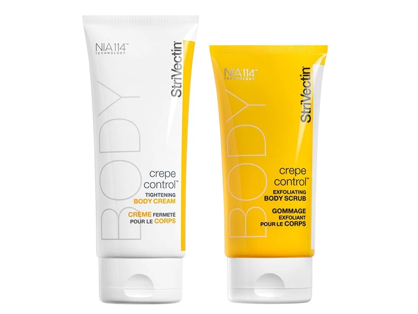 - Crepe Controlâ„¢ Body Scrub (5.0 oz): A combination of chemical and physical exfoliators, including rice powder and AHAs, dissolve and slough away the top layer of dead skin cells. Skin is instantly brighter and smoother. It’s also better prepared for the firming effects of the StriVectin Crepe Control Tightening Body Cream.
