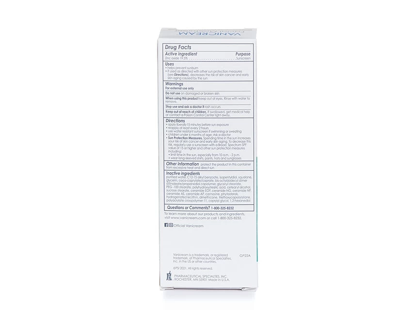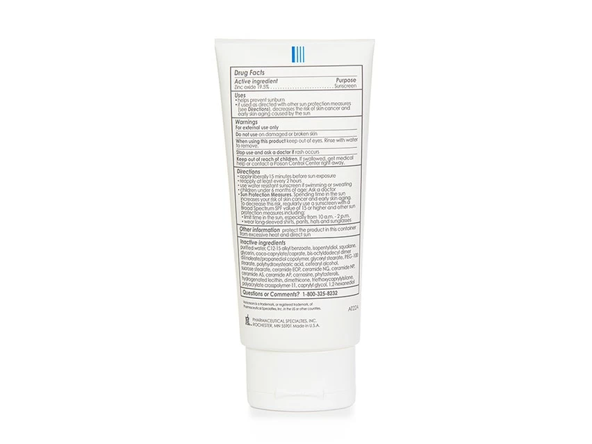 This lightweight moisturizer combines the power of ceramides with 19.5% zinc oxide. That gives you both the moisture and broad-spectrum sun protection your skin needs every day. True to Vanicream, it has a very clean formula free of aluminum, dye, fragrance, gluten, parabens and phthalate.