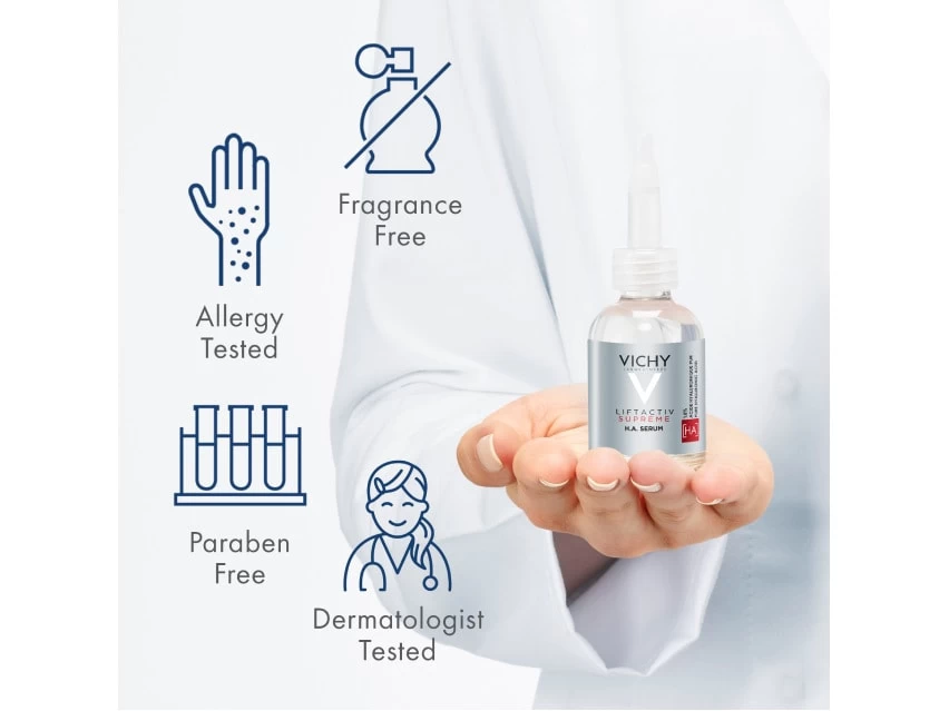 Vichy LiftActiv Supreme 1.5% Hyaluronic Acid Face Serum & Wrinkle Corrector visibly smooths skin.